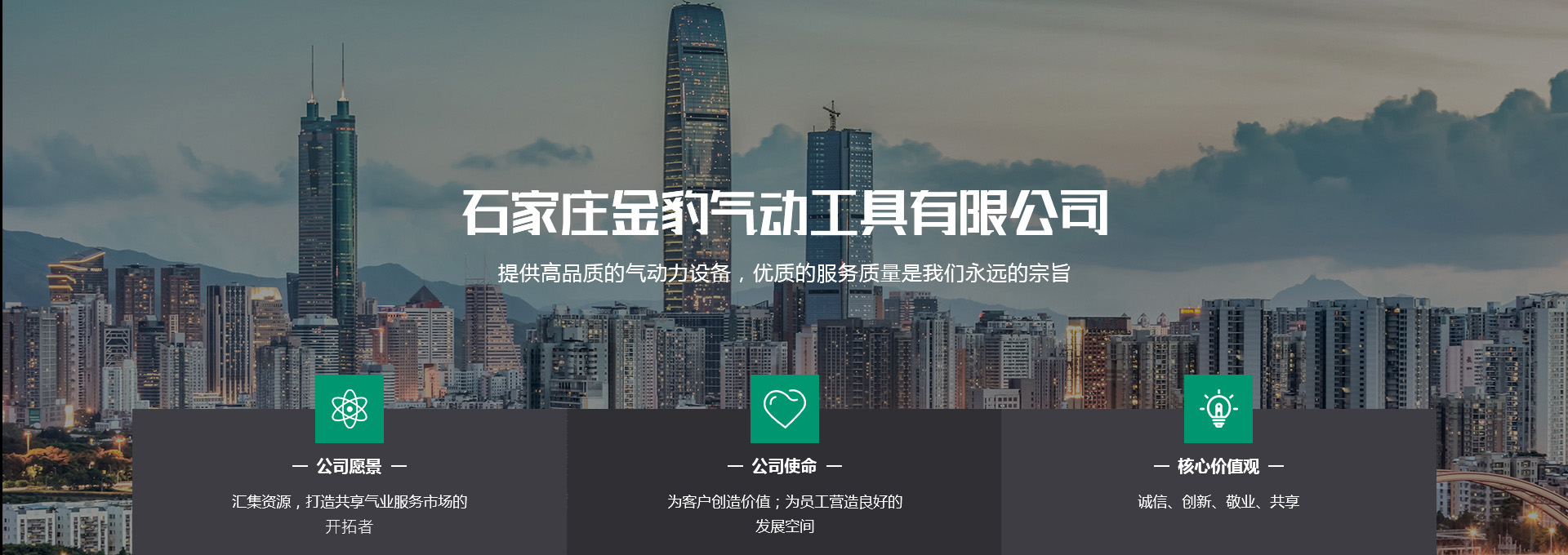 石家莊金豹氣動工具有限公司2004年成立于紅色革命圣地 石家莊,在華北地區以生產、銷售代理、技術咨詢、節能改造、售后服務、備件供應、設備租賃的方式經營空氣壓縮機,以及鉆機、鉆具等氣動力設備。公司秉承以誠信、創新、敬業、共享的核心價值觀,提供優質氣動力設備,以及高效、主動型的服務,解決用氣單位后顧之憂。